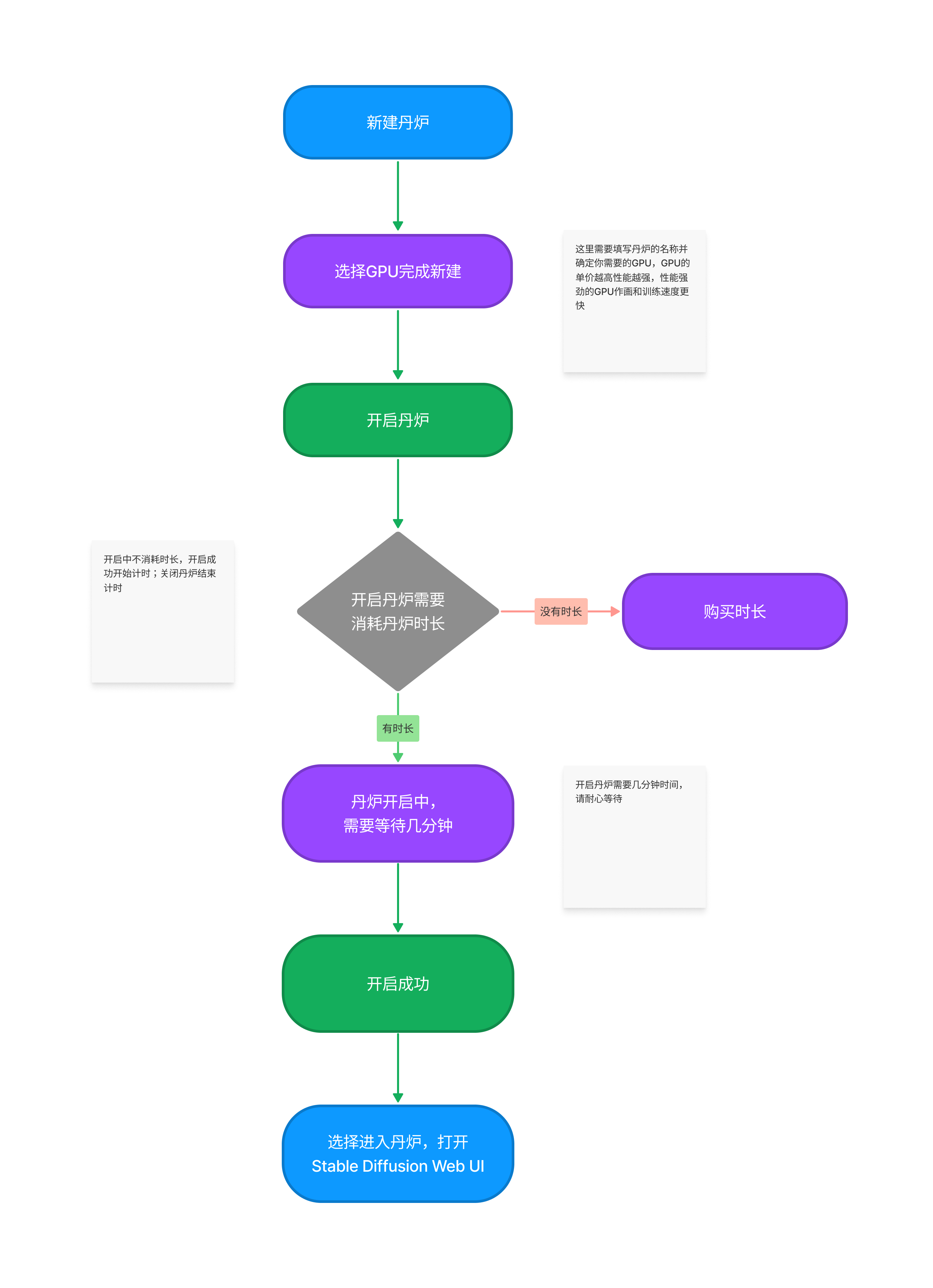 A:创建丹炉并购买时长后,即可开启丹炉,丹炉开启成功,点击进入丹炉,即可打开Stable Diffusion Web UI。